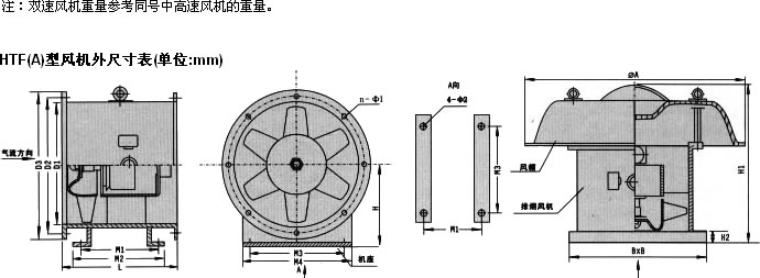 应用:高层建筑、烘房、地下车库、地铁、隧道等消防排烟及送排通风,双速风机低速用于平时通排风、高速时为消防排烟